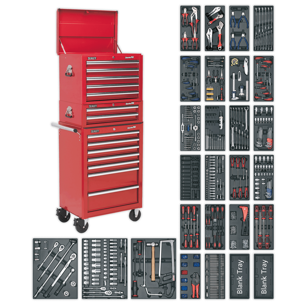 Sealey SPTCOMBO1 Tool Chest Combination 14 Drawer with Ball Bearing Slides – Red & 1179pc Tool Kit